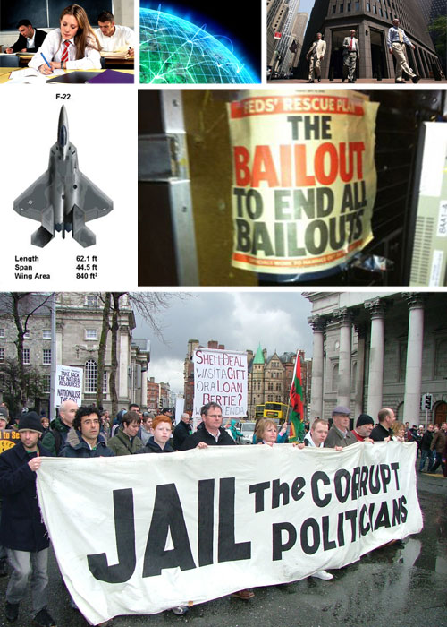 Now imagine that you have a credit card with around a $15 trillion limit, of which you’ve used $14.5 trillion, you’ve lost your job, and you have a couple hundred billion more in outstanding payments. It may be a radical move, but in this situation it might make sense to throw in the towel and declare bankruptcy, or in America’s case, renegotiate its debt obligations. To be perfectly clear: This is an insanely extreme measure and would only be rational to implement if the US credit rating continued to drop dramatically and the world financial system was in complete worse-than-the-depression freefall. But if things (dear god) got any worse, complete overthrow of the government and a bottom-up reform of the financial system and fiscal controls would suddenly move from the realm of “conspiracy theorist chattering in his basement” to “well maybe us normal people should think about this.” This is how insane the world has become.