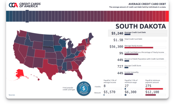 The average credit card debt per individual in 40+ American states ranges between $4,700 and $6,000. In the remaining 10 states, average credit card debt jumps to $8,000.